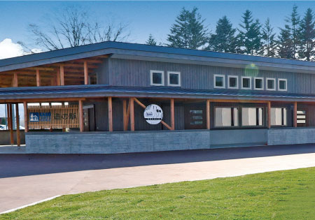 「クレインズテラス」とは、「タンチョウが集う憩いの場所」という意味。建築素材は、釧路産のカラマツ材を使用しています。
